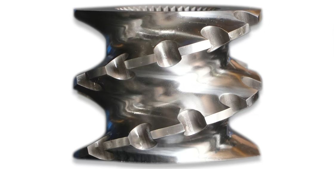 Bloc de convoyage : C'est l'élément hélicoïdal le plus fondamental, dont la fonction principale est de pousser le matériau vers l'avant le long de la direction axiale de la vis. Grâce à sa conception hélicoïdale, il assure le convoyage uniforme du matériau à l'intérieur du canon, fournissant une base pour les opérations de mélange et de cisaillement ultérieures.