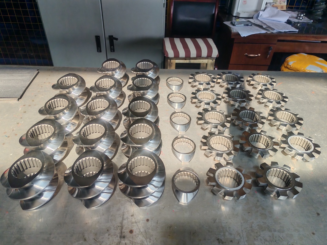 • les matériaux de métallurgie des poudres: tels que les matériaux de métallurgie des poudres HIP importés WR5, WR13 etc., avec une résistance à la corrosion ultra-haute, une résistance à l'usure élevée, un couple élevé et une résistance aux fissures,peut répondre aux besoins des éléments de vis d'extrudeuse haut de gamme.